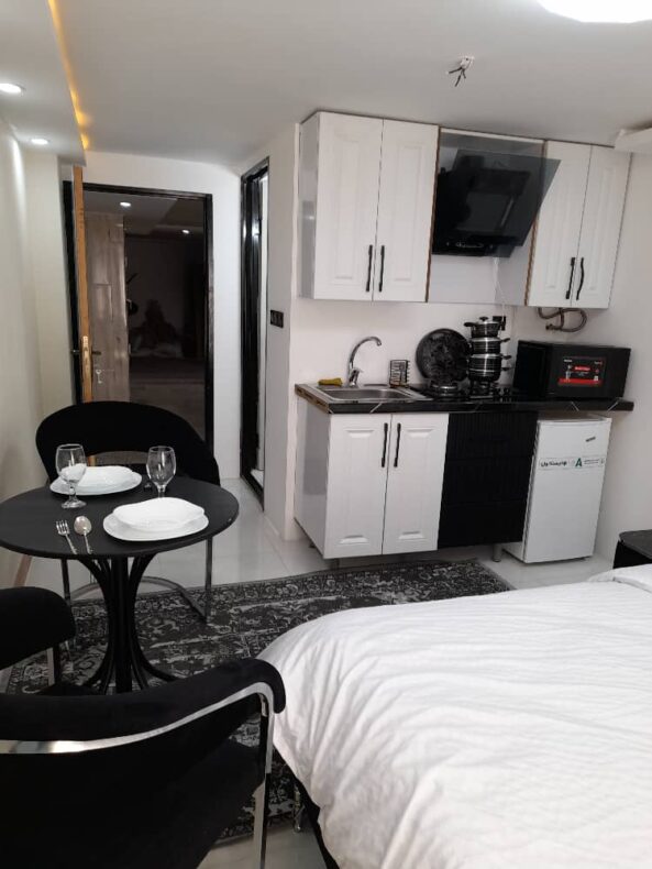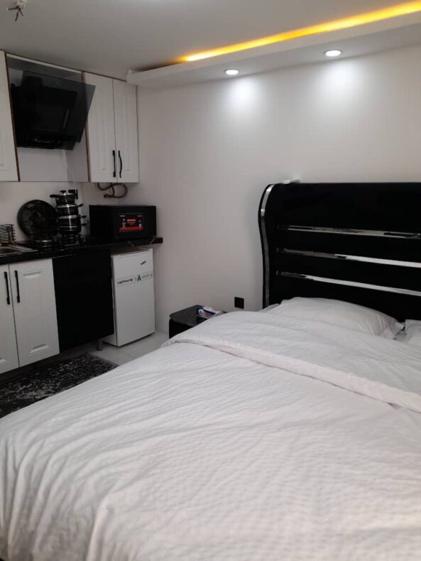 سوییت مبله ی تمیز و شیک بازسازی شده واقع در طبقه همکف مناسب اقامت روزانه و هفتگی تا دو نفر در تهران با دسترسی عالی به اتوبان چمران و یادگار امام بی آسانسور و بی پارکینگ با لباسشویی و اسپلیت