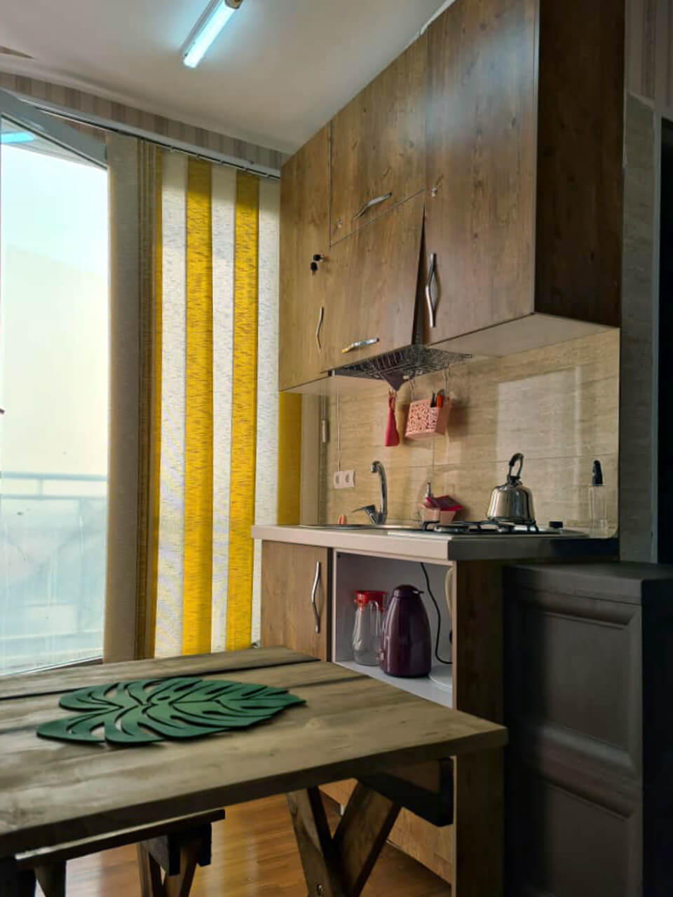 آپارتمان یکخواب تک واحدی واقع در طبقه چهارم با سرویس بهداشتی فرنگی نزدیک به بلوار اندرزگو بدون پارکینگ مناسب اقامت درتهران مناسب برای دونفر